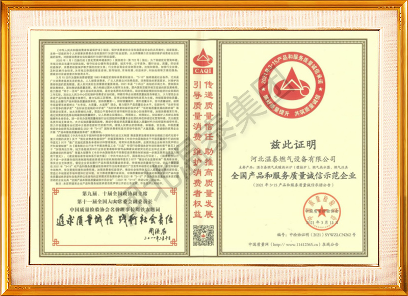 產(chǎn)品質(zhì)量均達(dá)到并優(yōu)于國家GB25034-2010《燃?xì)獠膳療崴疇t》標(biāo)準(zhǔn)要求
