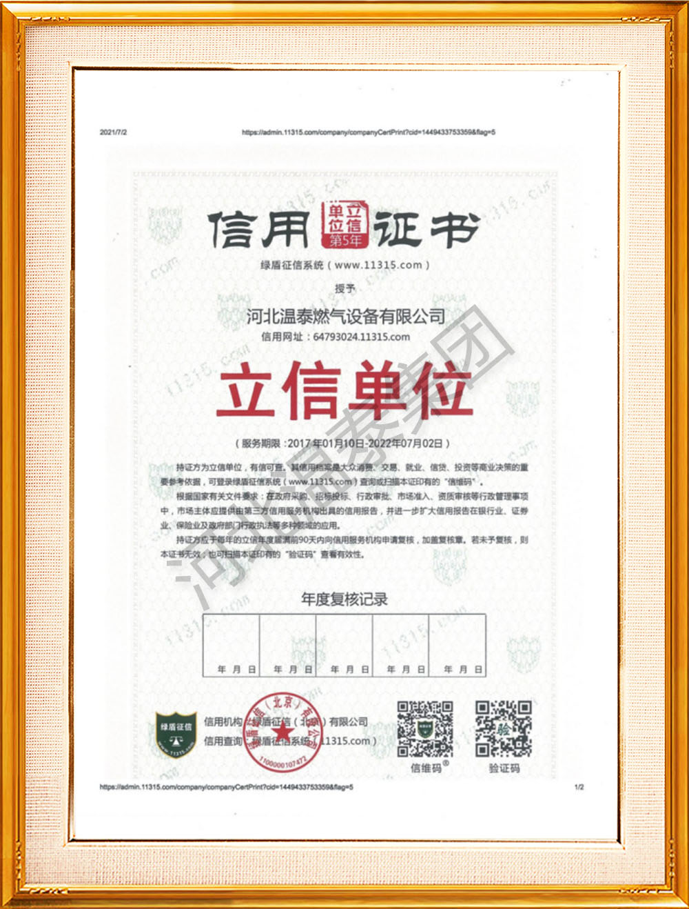 立信單位信用證書 -