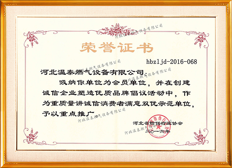 重質(zhì)量講誠信榮譽(yù)證書 -
